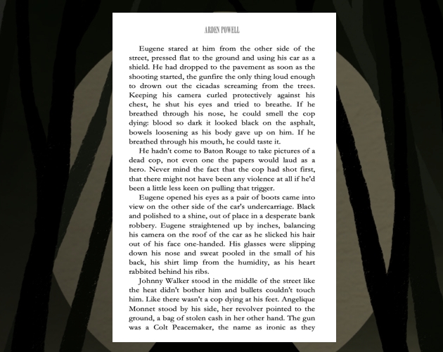 Now, nearly two decades later, there are more dangerous things than gators in Chanlarivyè. People are disappearing again, and this time, no one can find the bodies. As the town's unease grows, charismatic fugitive Johnny Walker arrives on the scene, shedding bullet casings and stolen bank notes in his wake. He tangles himself up in Eugene's life and awakens memories Eugene thought he had laid to rest years ago. Memories of the mysterious man who followed Eugene into his dreams, and memories of the bayou—and of the horrifying entity that lurks beneath the water's surface, slowly seeping into the town like a stain.