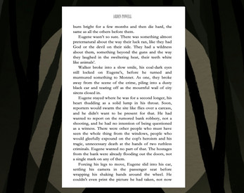 To copy my GoodReads review to over here "I really loved how the physical town feels like a character in its own right; you can feel how encompassing its pressure is. I also enjoyed how Eugene reached to the world around him and the situations he ends up in; felt very realistic."